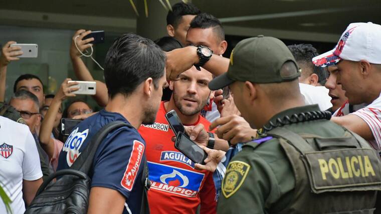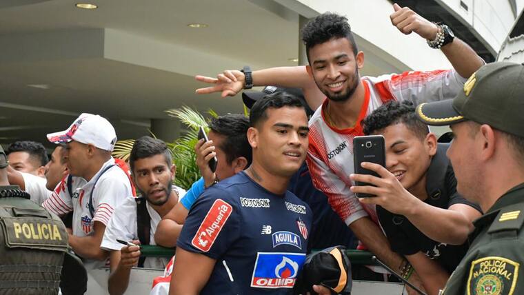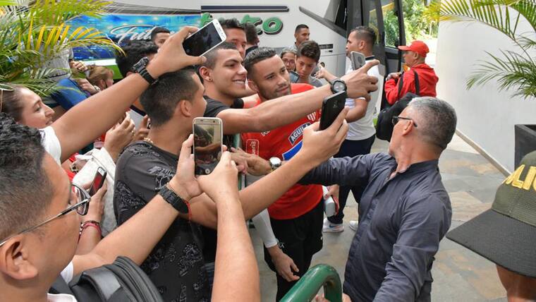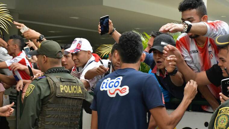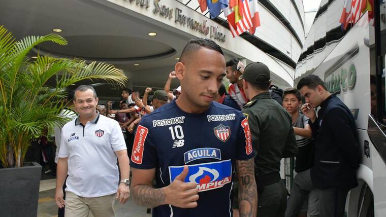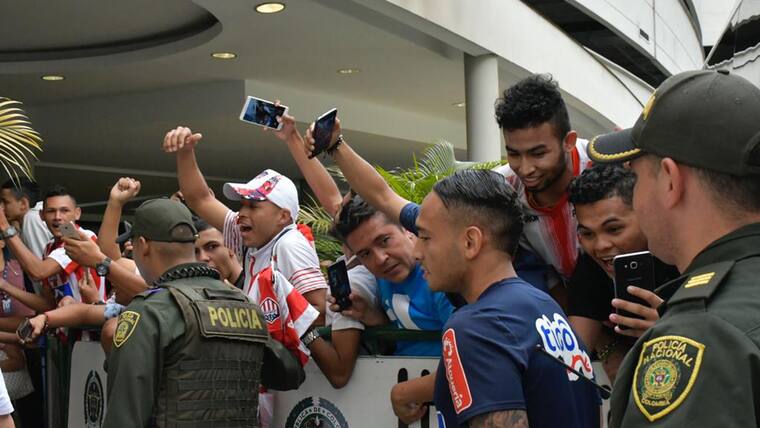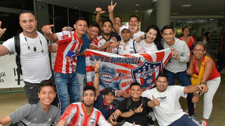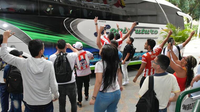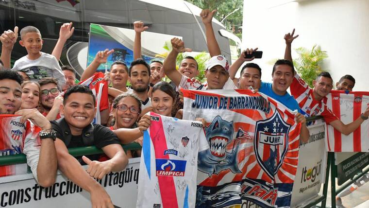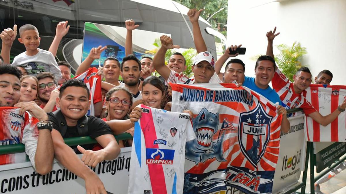 La hinchada juniorista acompañó al equipo en la salida del hotel antes de que los jugadores se digirieran al último entrenamiento previo a la final de la Liga Águila II-2018 ante el Medellín.