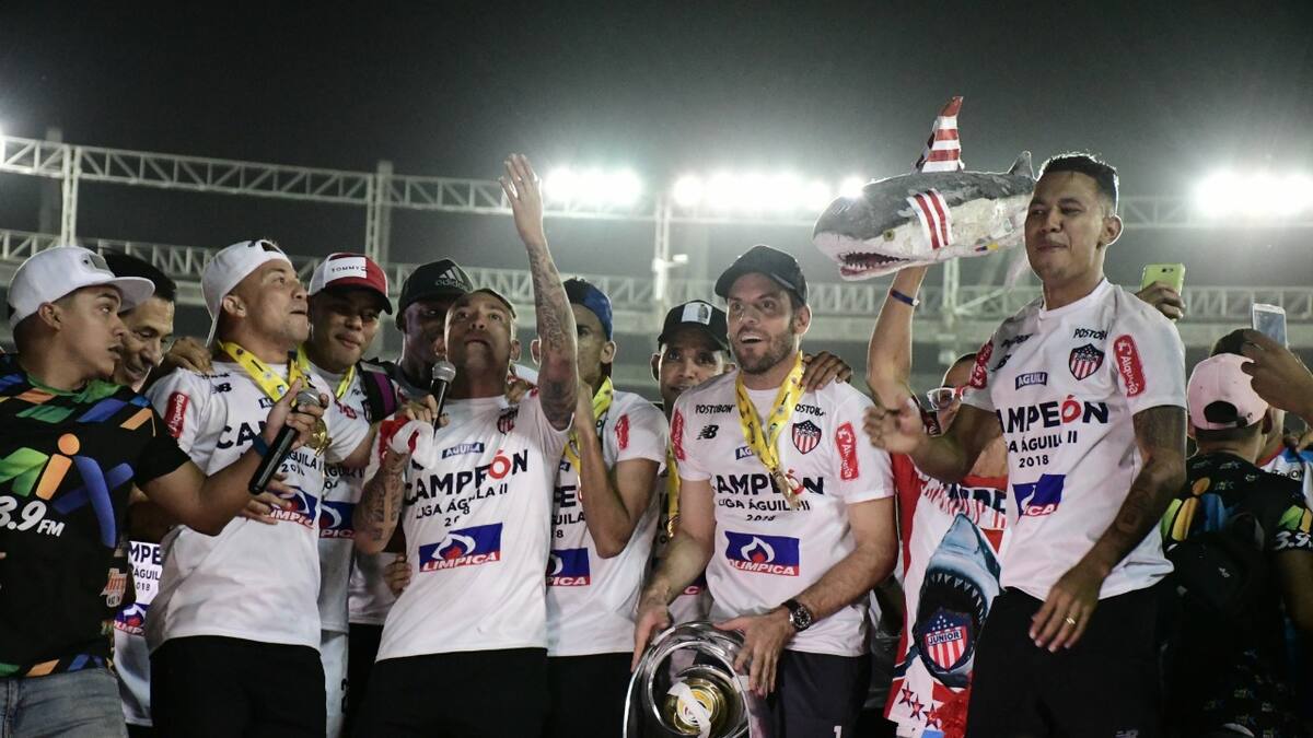 Cientos de aficionados aguardaban al onceno de Barranquilla tras coronarse campeón del fútbol colombiano. Los privilegiados de estar en el campo del Metropolitano aprovecharon para tomarse una foto con los jugadores.