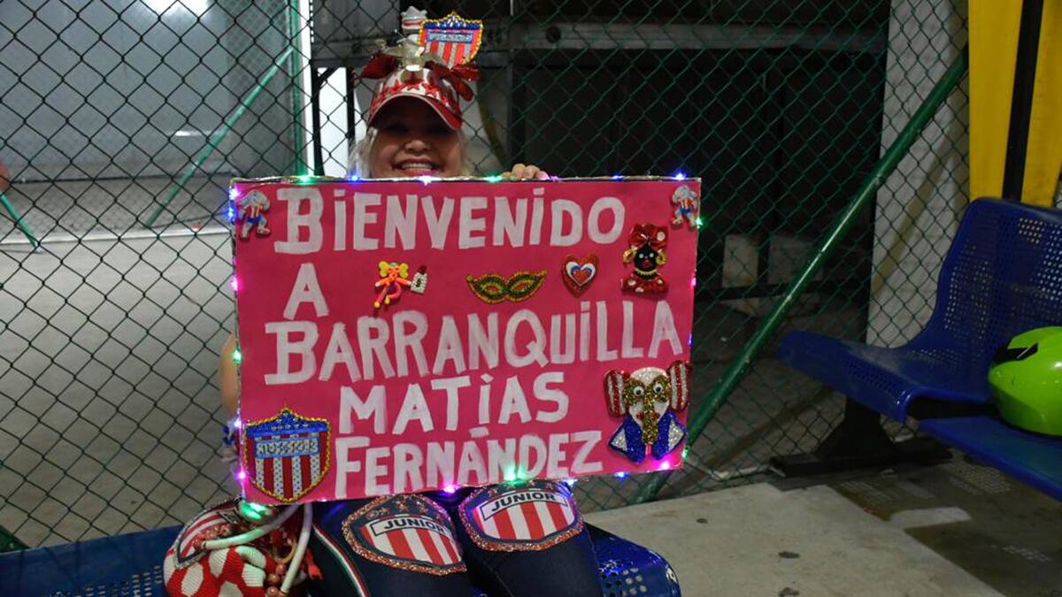 'Llegué a las 8:30 de la noche. Matías Fernández es un gran jugador y estoy muy feliz de que Junior lo haya contratado', dijo la mujer que llegó con una pancarta en la mano.