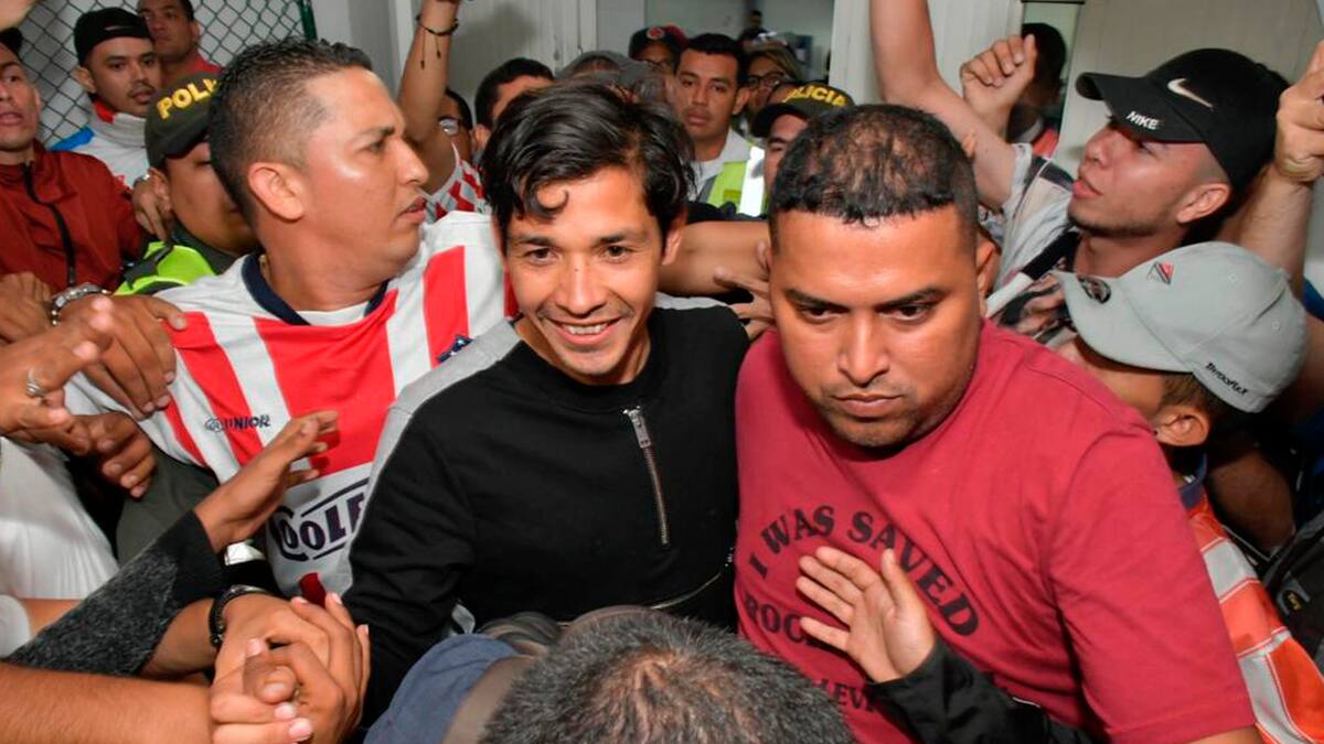 El volante chileno arribó hacia las 11 de la noche de este miércoles para vincularse al club barranquillero. Un grupo de hinchas de Junior lo esperaron en la entrada del aeropuerto para darle la bienvenida.