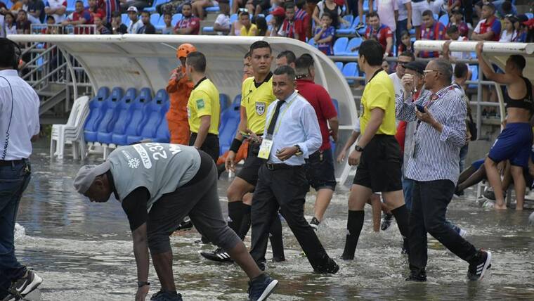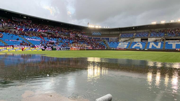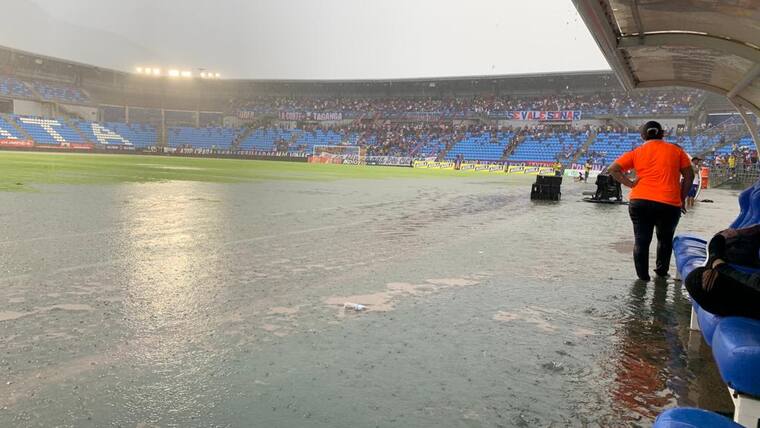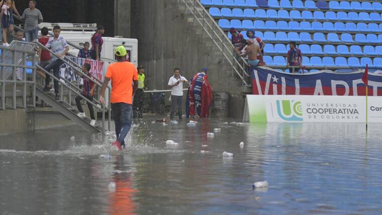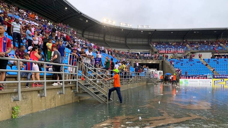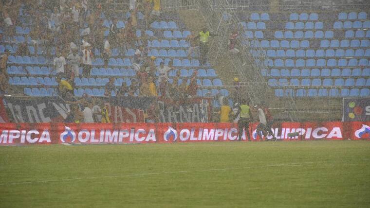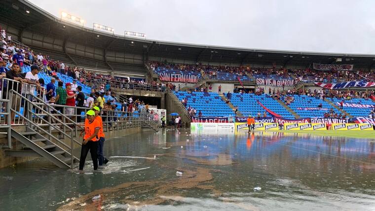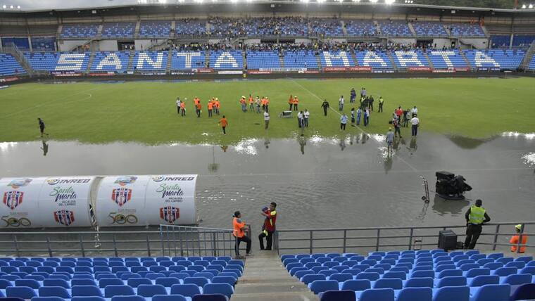 Solo se podía jugar water polo en la cancha del estadio Sierra Nevada. El aguacero que cayó sobre Santa Marta dejó más que encharcado el rectángulo del escenario futbolero de los samarios, y el segundo tiempo del clásico costeño entre Unión Magdalena y Junior, que terminó igualado 1-1 en la primera etapa, no se pudo disputar este domingo y fue postergado para el lunes, partir de las 9 a.m. (con transmisión por Win Sports).