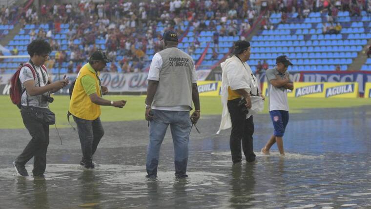 El árbitro Andrés Rojas esperó, miró y analizó las posibilidades de continuar el partido, pero era imposible. La cancha se convirtió en una piscina en la que aparecieron hasta sapos (ver nota al respecto en la 2D). Eso fue el clásico… el clásico ‘oso’, el clásico ridículo nacional con un estadio inconcluso a pesar de que se inauguró hace más de un año (para los Juegos Bolivarianos Santa Marta-2017).