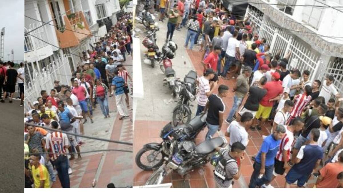 Tanto nuestros fotógrafos de EL HERALDO, como usuarios de la línea Wasapea nos comparten imágenes de las filas que se pueden ver en ciertos puntos de venta de boleteria de la final de la Liga Águila, Junior vs América en el estadio Metropolitano Roberto Meléndez. Fotos WASAPEA/Josefina Villarreal.