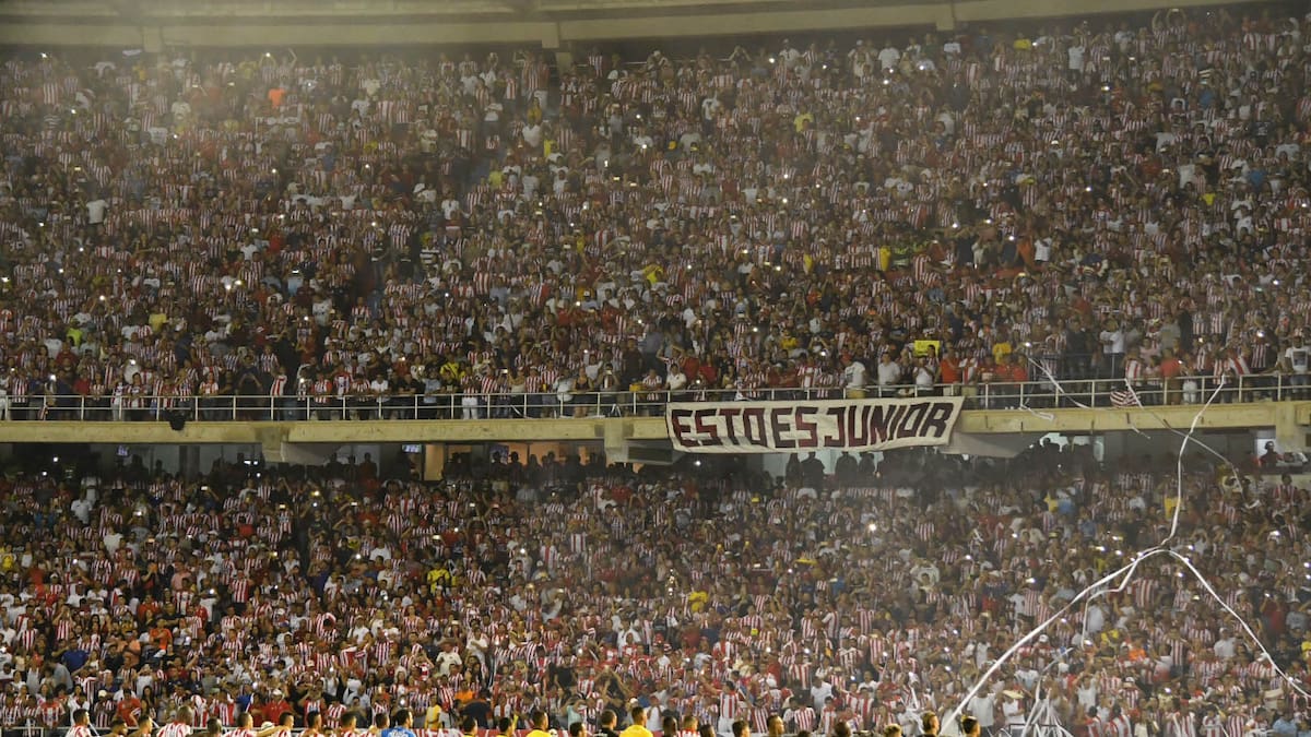 Hubo sobrecupo en las tribunas del estadio Metropolitano Roberto Meléndez. Varios aficionados se quedaron sin sillas y observaron el primer partido de la final de la Liga Águila II entre Junior y América en las escaleras o de pie.