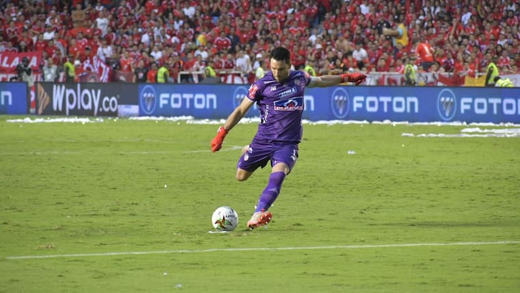 En medio del júbilo en las tribunas del Pascual, Junior pudo haber descontado en la agonía de la etapa inicial en una jugada afortunada en la que Neto Volpi salió a cazar mariposas y un pelotazo de Rafael Pérez terminó manso en el fondo de la red. No obstante, el árbitro Wílmar Roldán revisó la jugada en el VAR y la anuló por un milimétrico fuera de lugar.