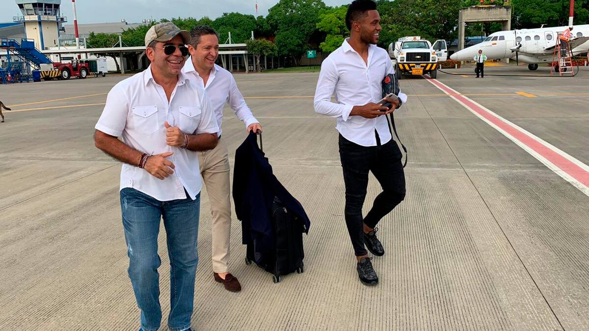 5:10 p.m. Borja y Char atienden a los medios de comunicación en el aeropuerto y reconfirman la contratación. Luego, al salir, son saludados por algunos aficionados.