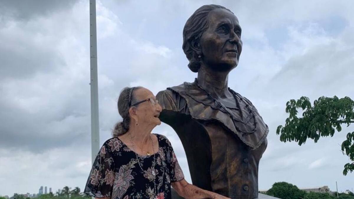 Carmen Mejía, hija de Micaela Lavalle, fundadora del equipo rojiblanco en 1924, visitó el busto que homenajea a su madre.