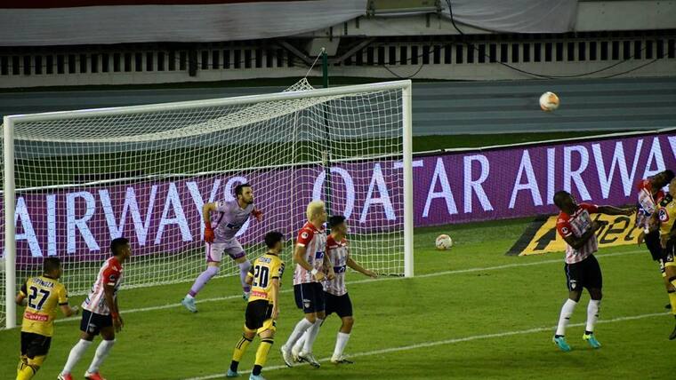 24. Gol de Junior. Después de una larga espera por la atención médica que recibió el arquero tras la acción del penalti, Miguel Borja ejecutó desde el punto blanco con seguridad, a la mano izquierda del portero, que se lanzó a la derecha.