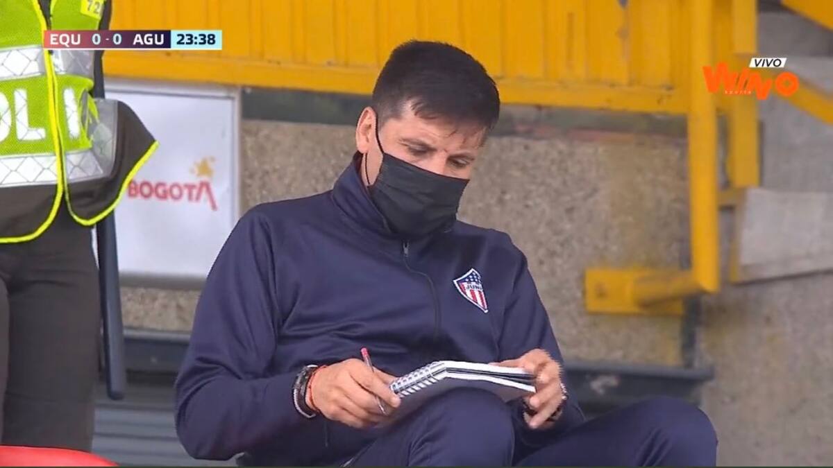Juan Cruz se vio hoy en la transmisión del canal Win Sports tomando apuntes desde la tribuna sobre el próximo rival del cuadro currambero, al que enfrentará este lunes, por la quinta jornada del rentado local.