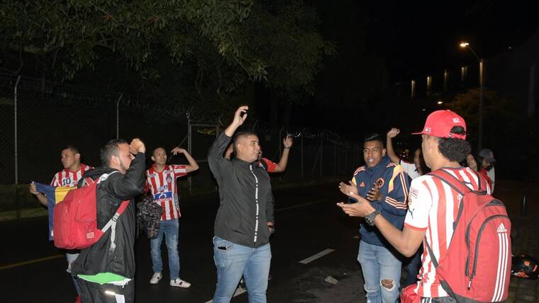 La curiosidad de la noche la protagonizaron los integrantes de las barras, quienes no lograron ver la llegada del plantel tiburón porque pensaban que el hospedaje sería en el hotel San Fernando Plaza. Cuando arribaron al Estelar Square, ya los jugadores habían subido a sus habitaciones y decidieron lanzar unos cánticos para que sintieran el apoyo desde la distancia.
