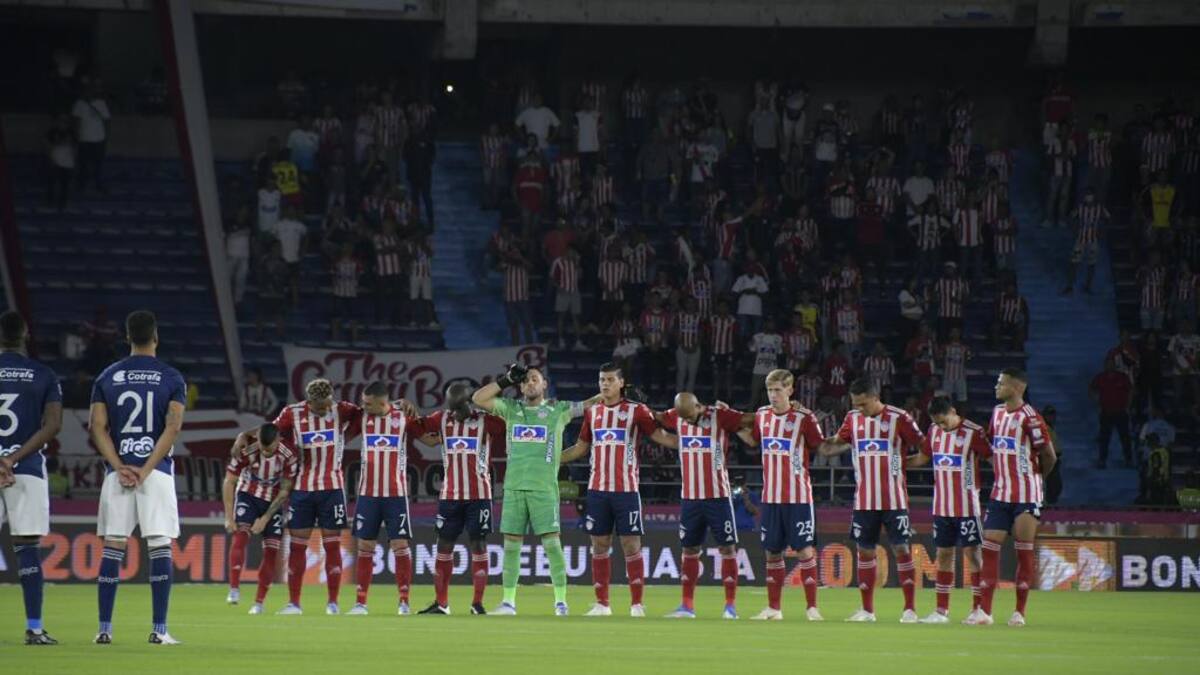 Tanto los jugadores del equipo rojiblanco como los del Medellin, rival del ‘Tiburón’, se reunieron en el centro del campo para realizar el tributo al reconocido exdirigente.