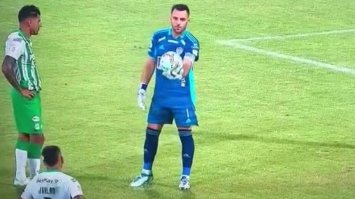 El cancerbero uruguayo cogió la pelota y desafió a Jarlan Barrera para que este pateara el cobro, sin embargo, el samario –que siempre se ve muy activo jugando contra su ex club- no quiso patear.