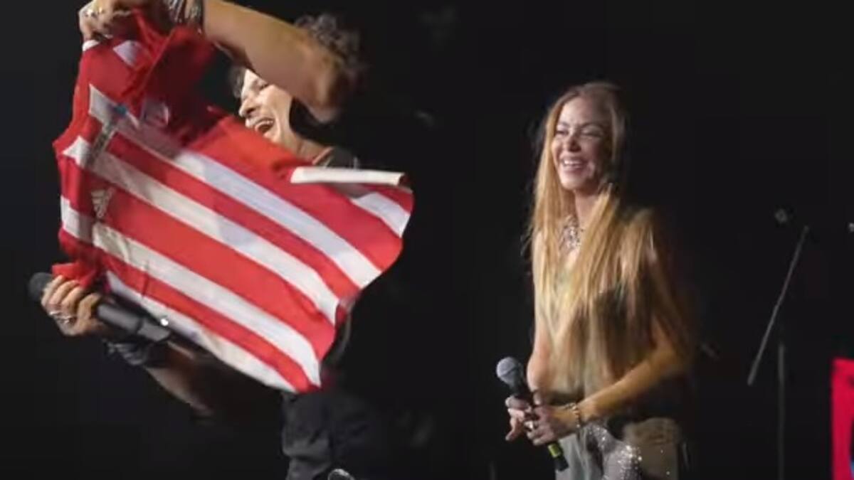 En medio de la sorpresa que Shakira le dio a Carlos Vives durante el concierto del samario en Miami, Estados Unidos, este sábado, salió a relucir una camiseta de Junior, equipo del cual es hincha la cantante barranquillera.