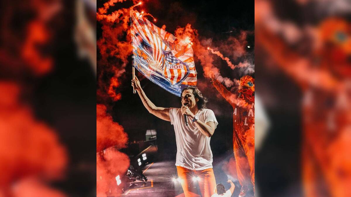 También la superestrella Silvestre Dangond, quien tuvo en la Noche de Velitas su concierto de lanzamiento de su más reciente álbum Ta’ malo, aprovechó para sacar una bandera de Junior y así demostrar su apoyo al equipo.
