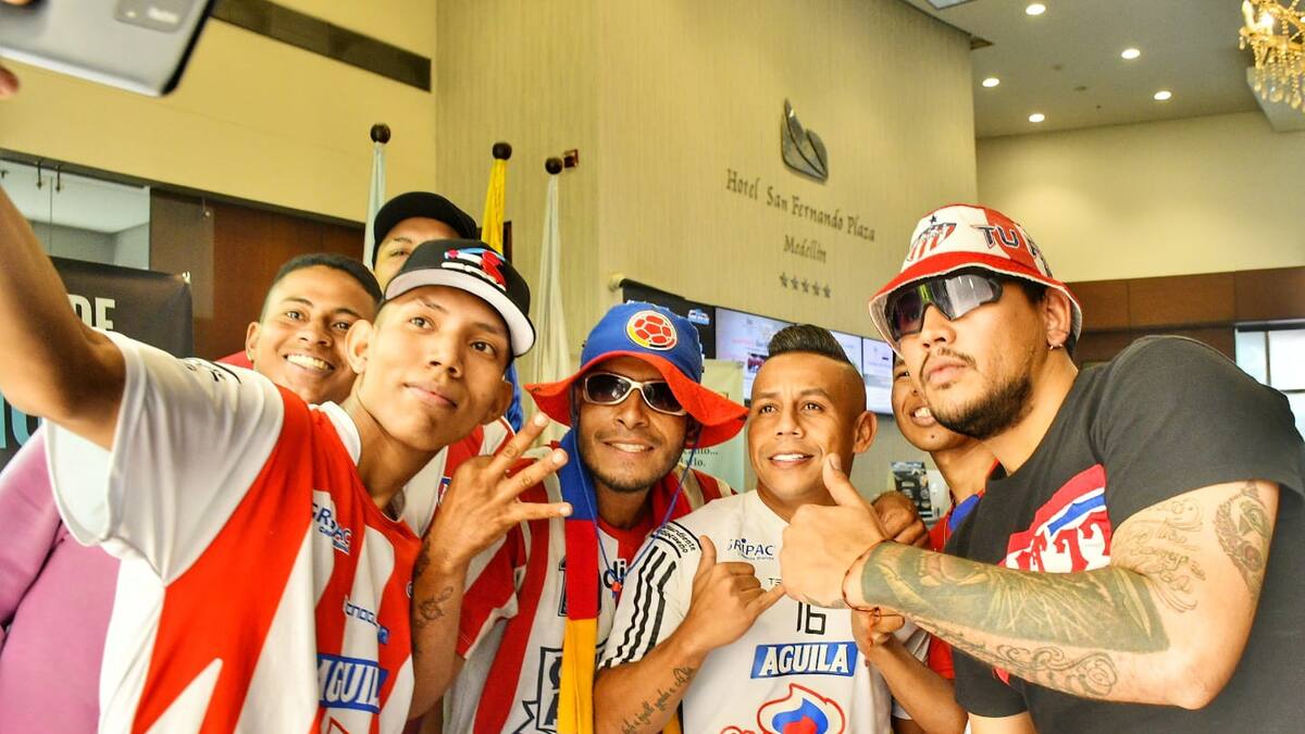 La energía positiva está al mil. Algunos hinchas de Junior llegaron desde tempranas horas al hotel San Fernando Plaza, sede de concentración del equipo rojiblanco en Medellín, para animar al ‘Tiburón’ horas previas a la final de la Liga-II, este miércoles, a las 8 p.m., en el Atanasio Girardot.