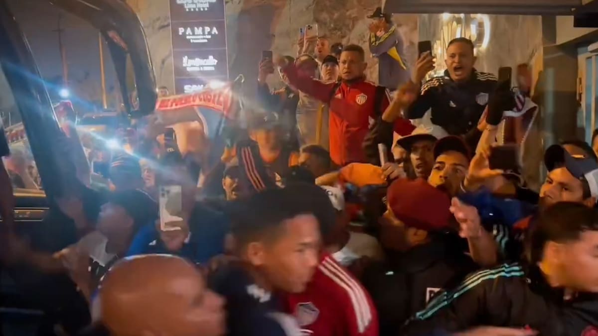 Pero la mayor cantidad de aficionados se dio cita en los alrededores del hotel en el cual se hospedó Junior. En medio de los fanáticos, los jugadores se abrieron camino para poder ingresar.