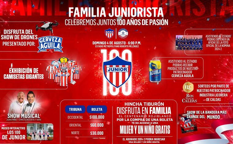 Prohibido aguar la fiesta. No es día para derrotas ni empates. Junior saldrá por la victoria ante Alianza FC, este domingo a partir de las 5:45 p.m. en el estadio Metropólitano Roberto Meléndez, para redondear como se debe la celebración de sus 100 años de historia.
