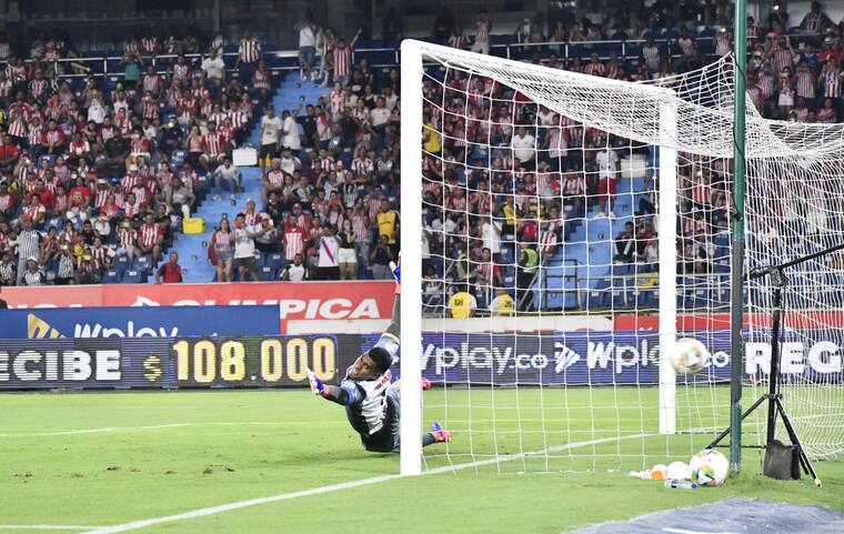 13. Gol de Junior. Bacca ejecuta a la mano izquierda del arquero, que se lanza ahí sin suerte por la potencia y ubicación del remate.