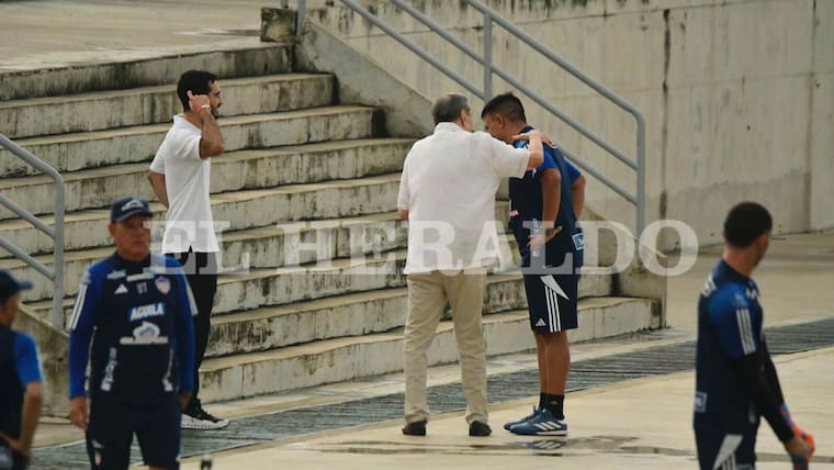 El primer entrenamiento del técnico se da a puertas cerradas, aunque se pueden observar alguno de sus movimientos en el estadio.