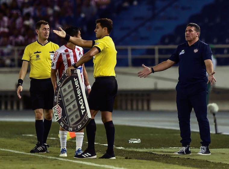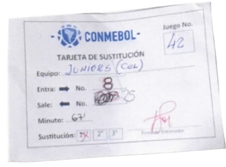 EL HERALDO le muestra paso a paso la equivocación de Gustavo Adrián Tejera, el cuarto árbitro del partido Junior-Palmeiras, que no vio bien la boleta oficial de una sustitución y terminó usurpando una de las funciones del técnico rojiblanco Luis Fernando Suárez. La modificación era Hinestroza por Serje, pero salió Sambueza por el error arbitral.