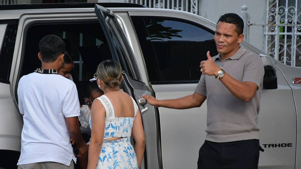 El jugador se bajó de su carro y saludó a los medios de comunicación presentes que grababan su ingreso al lugar.