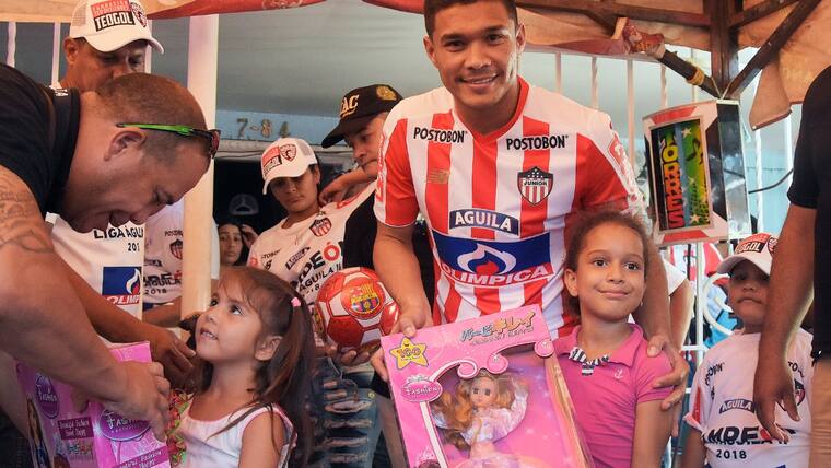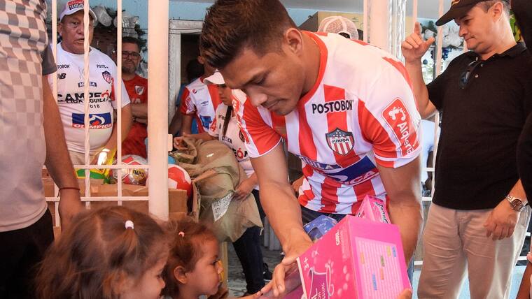 El atacante barranquillero se tomó fotos con los niños, firmó autógrafos, regaló abrazos y entregó los obsequios… siempre con una sonrisa, esa que no se borra de su rostro desde el pasado 16 de diciembre cuando recibió en Medellín el mejor de los regalos en esta Navidad, la anhelada octava estrella, esa por la que tanto luchó.