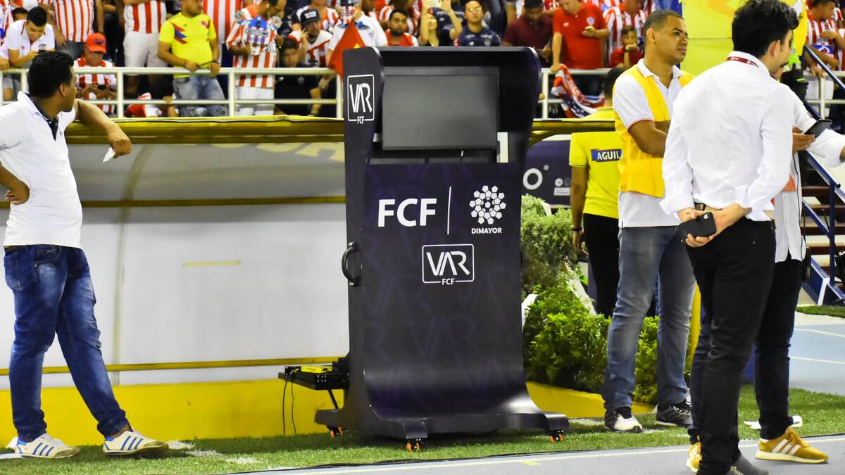 Al minuto 32, llegó el estreno del videoarbitraje, con un gol anulado a Teófilo Gutiérrez. El delantero barranquillero anotó de golpe de cabeza, pero en posición adelantada. El línea dio el fuera de juego, pero igual el árbitro Mario Herrera recurrió al VAR para verificar que la decisión fuera acertada. En la imagen se ve a Teo saliendo del fuera de lugar, cuando Piedrahíta metió el centro desde el sector derecho. Bien usado el recurso por el central.