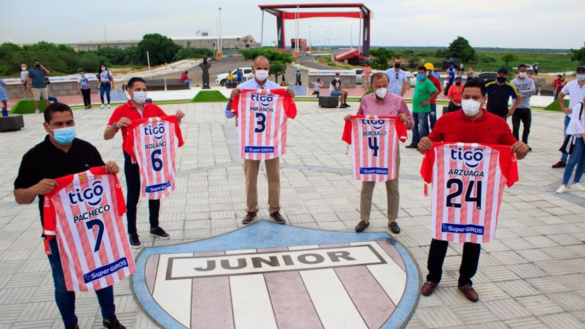 Gabriel Berdugo, Dulio Miranda, Víctor Danilo Pacheco, Jorge Bolaño y Martín Arzuaga, cinco ídolos rojiblancos del caribe, dos veces campeones en diferentes épocas, pusieron sus pies descalzos en cemento fresco y estamparon su exitoso rastro. Son los primeros de muchas pisadas junioristas que se inmortalizarán en ese lugar.