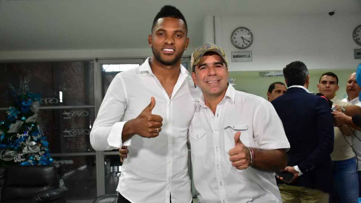 El delantero cordobés Miguel Borja tras aterrizar en Barranquilla junto al alcalde saliente Alejandro Char, habló con la prensa y aseguró que va a trabajar fuerte para ser campeón con Junior, mientras que el mandatario indicó que el sueño se le hizo realidad al jugador.