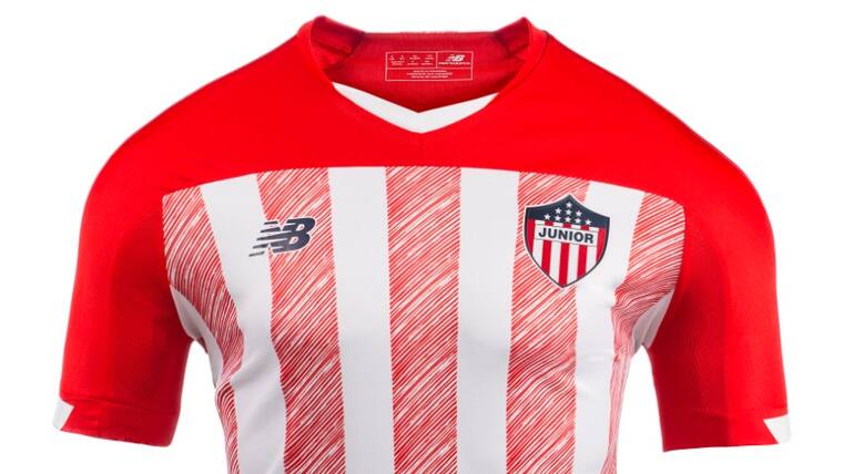 'Esta es la camiseta mejor confeccionada y con mayor tecnología de la de historia de Junior. Es de material 100% poliester con propiedades hydrophilic y tecnología de secado rápido NB Dry. Está confeccionada con tela double-knit en los paneles del cuerpo frontal y trasero, tela Interlock en la parte superior de hombros y mangas, y tela de rejilla o malla en la parte interior de las mangas. Contar con estas tres telas, permite mantener la frescura, la transpirabilidad y la comodidad de quien la porta. Tiene un ajuste atlético, el mismo modelo que utilizan los jugadores en la cancha. Contiene un cuello elaborado con cortes tipo V, heat transfer ‘Megaspeed’ en las mangas, lo cual es una característica de todos los equipos patrocinados por New Balance, un heat transfer en la parte superior trasera con la bandera de Barranquilla en homenaje a la ciudad y un autenticador holográfico New Balance para garantizar una calidad genuina. Además, cuenta con escudo espectacular en transfer 3D', comentó Luis Gabriel Salcedo, ‘Sports Marketing Specialist’ de New Balance Colombia, firma que viste a Junior desde junio de 2016.