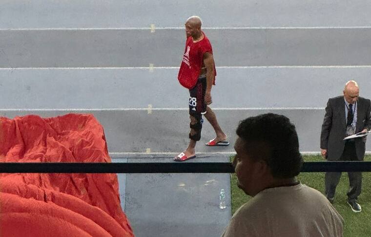 El samario, que estaba siendo uno de los mejores jugadores del primer tiempo, sufrió un fuerte golpe en una de sus rodillas disputando un balón.