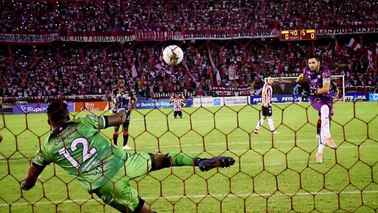 73. Gol de Junior. Teófilo ejecuta a la mano izquierda de Chaverra, que se lanzó a su derecha.