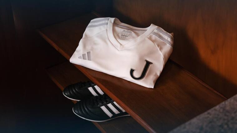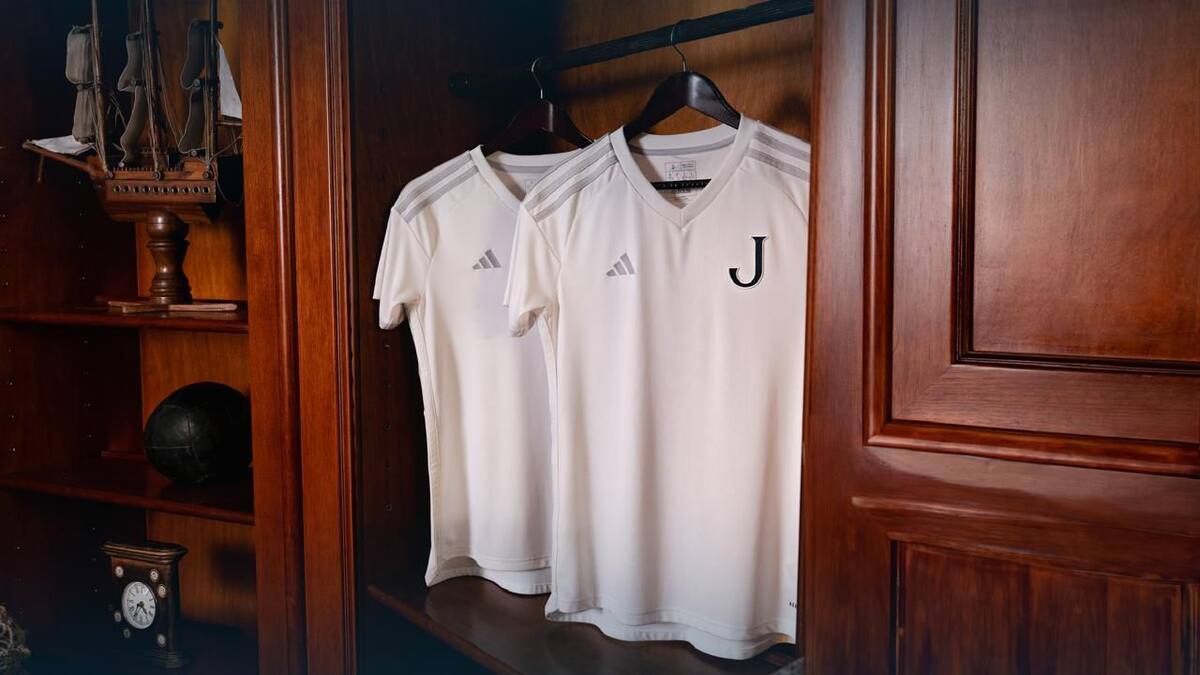 La indumentaria es blanca, teniendo el primer color y el primer escudo del club: el blanco y la ‘J’, junto con detalles plateados, marcando un hito en la historia del equipo.