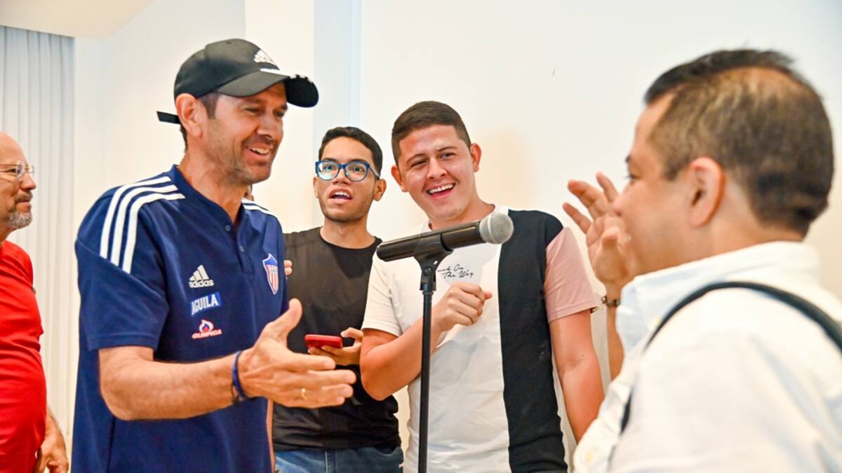 '¡Por el entrenador!', expresó Reyes generando hilaridad entre los demás periodistas y en el mismo Enamorado.