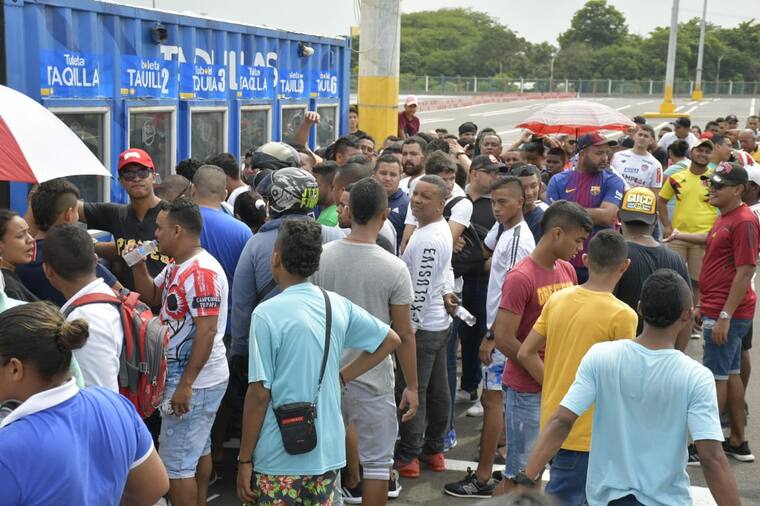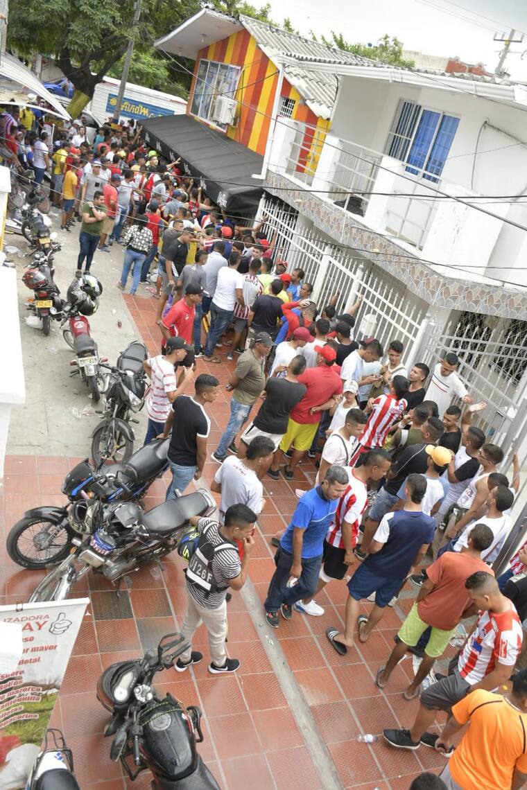 Tanto nuestros fotógrafos de EL HERALDO, como usuarios de la línea Wasapea nos comparten imágenes de las filas que se pueden ver en ciertos puntos de venta de boleteria de la final de la Liga Águila, Junior vs América en el estadio Metropolitano Roberto Meléndez. Fotos WASAPEA/Josefina Villarreal.