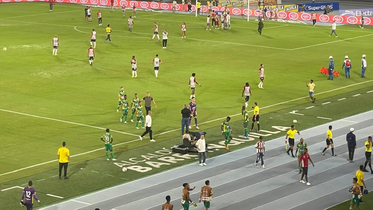 Bucaramanga, liderado por Rafael Dudamel, pidió a sus jugadores retirarse al camerino y el árbitro Andrés Rojas hizo lo propio. Segundos después, los jugadores locales imitaron a los visitantes poco a poco.