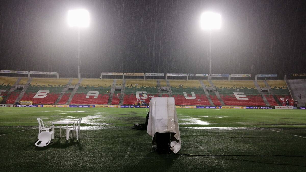 El aguacero se desató a los pocos minutos de iniciado el encuentro (7:30 p.m.). Sin embargo, el drenaje del gramado del estadio ibaguereño funcionaba y no impedía el normal desarrollo del juego, pero a medida que fue transcurriendo el tiempo, la tempestad iba arreciando y media hora después, a las 8 p.m., cuando aparecieron los truenos, rayos, relámpagos y centellas, el árbitro Carlos Mario Herrera interrumpió el compromiso.