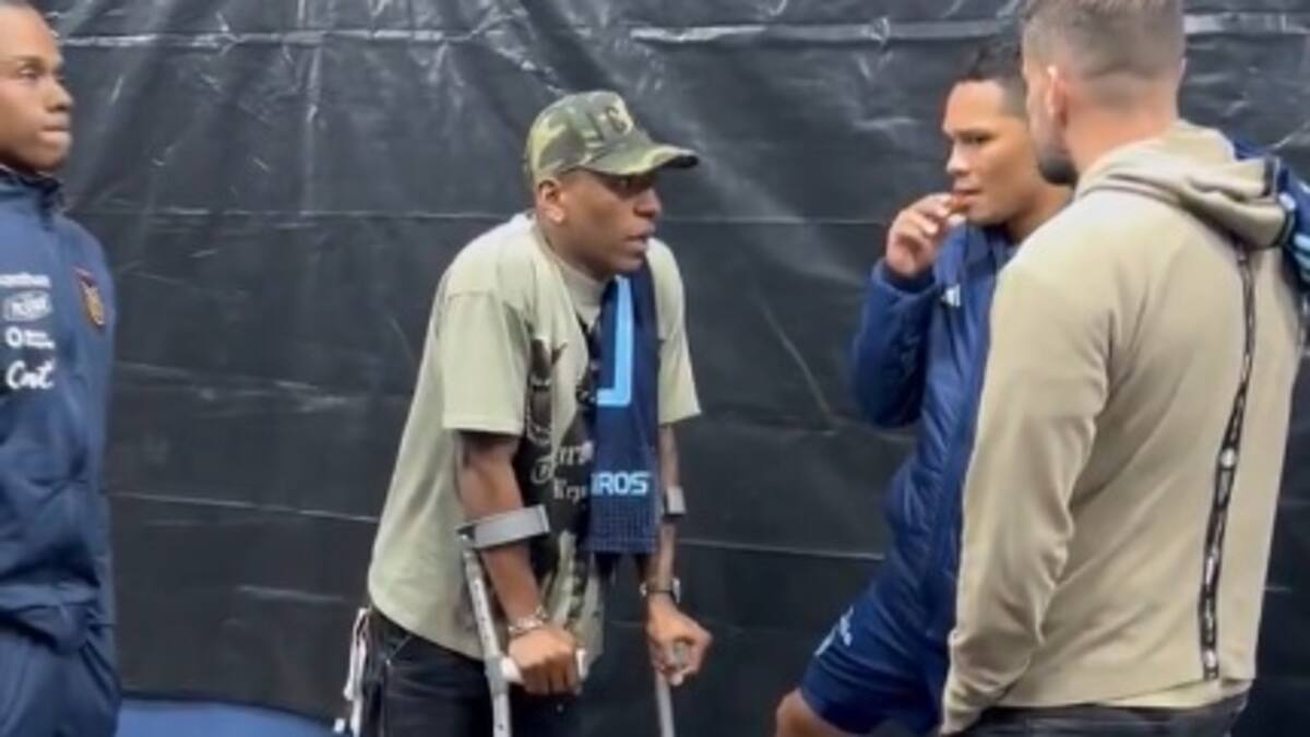 Bacca se abrazó con varios integrantes del equipo albo al final del juego, incluido el técnico español Josep Alcácer, quien lo dirigió en su país como asistente del Villarreal y Granada.