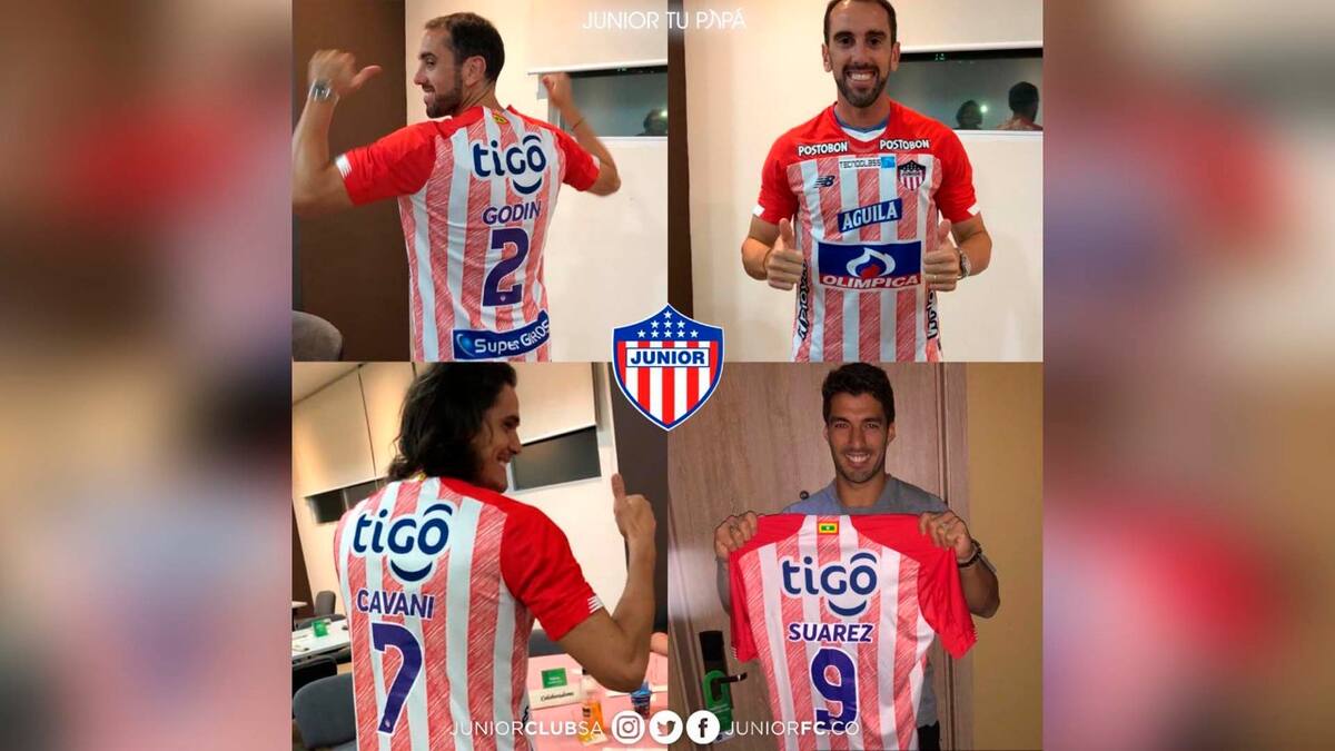 Luis Suárez, Edinson Cavani y Diego Godín son rojiblancos... o por lo menos ya se enfudaron la camiseta del Junior, gracias al detalle que tuvo con ellos el arquero uruguayo del ‘Tiburón’, Sebastián Viera.