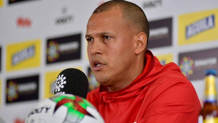 El joven técnico barranquillero, muy seguro de sí mismo y acompañado de Sebastián Viera, arribó a las 12:30 p.m. a un amplio salón del hotel NH Cali Royal, donde la Dimayor tenía todo preparado para el encuentro con los medios, y encaró los interrogantes de la prensa.