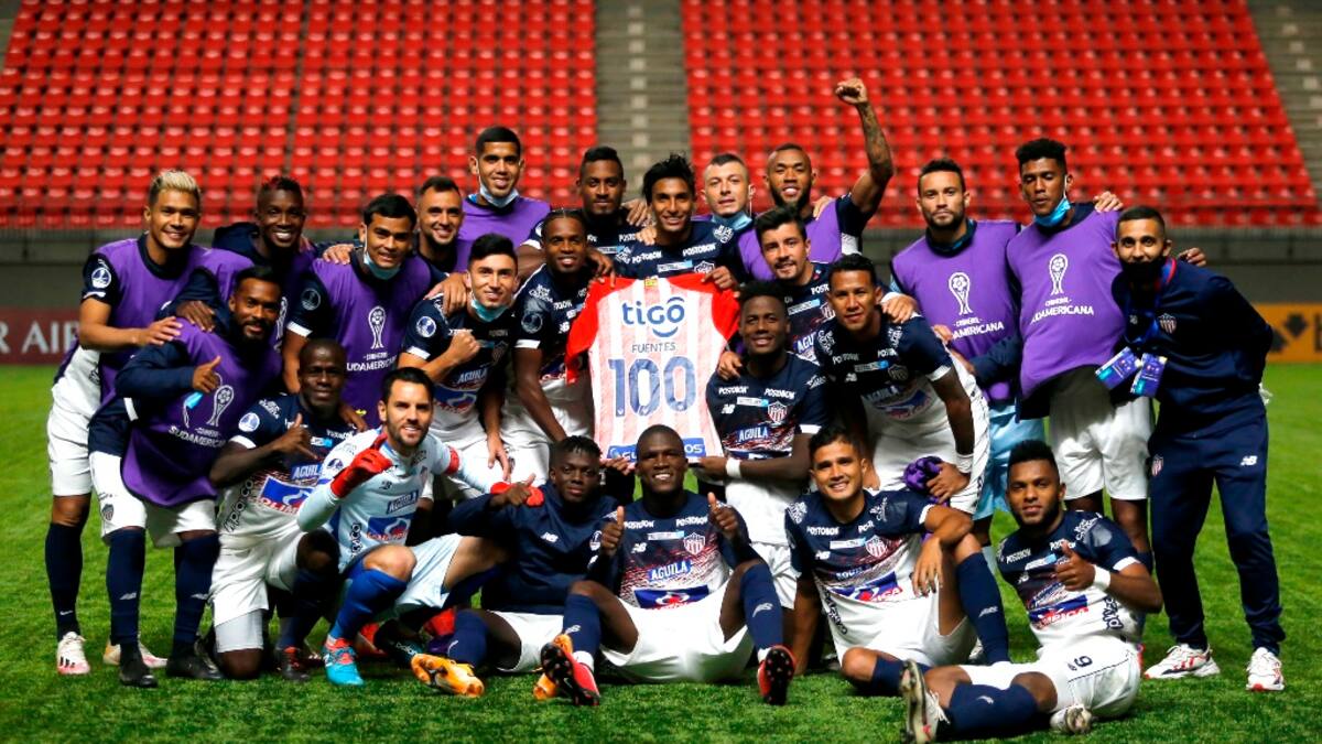 Gabriel Fuentes celebró su partido 100 con Junior con la clasificación a los cuartos de final de la Copa Sudamericana. El lateral rojiblanco anotó el penal definitivo de la tanda y celebró a rabiar con sus compañeros el seguir con vida en el torneo continental.
