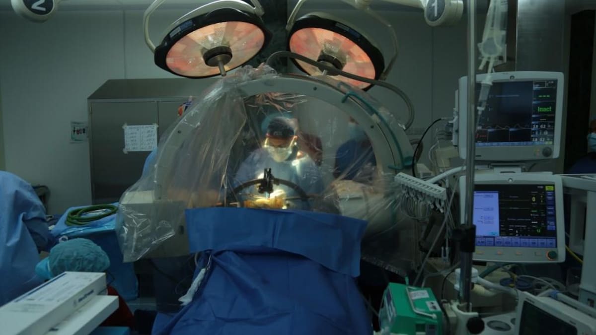 Llega a la clínica preguntando si ya había comenzado la cirugía. Pide un uniforme, se acomoda un gorro quirúrgico y entra en la sala fuertemente iluminada y con tres pantallas que monitorean los signos de Daniel.