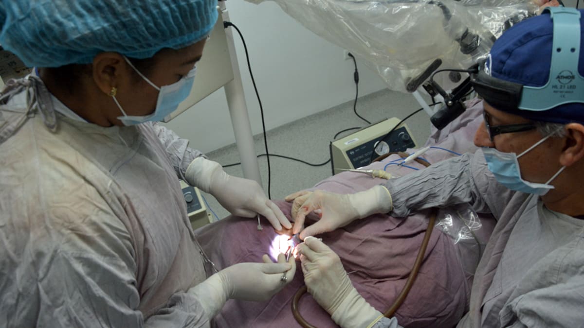La intervención duró cerca de una hora y media. En ella el galeno buscaba llegar a la cóclea en un trayecto milimétrico, teniendo en cuenta el músculo facial y el cerebro. Una misión acompañada de un potente microscopio.