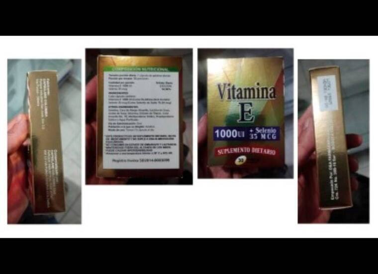 El nombre del suplemento es VITAMINA E 1000UI + 35mcg SELENIO, por eso, la entidad llama a tener cuidado con su consumo, pues “está siendo objeto de falsificación en Colombia”.