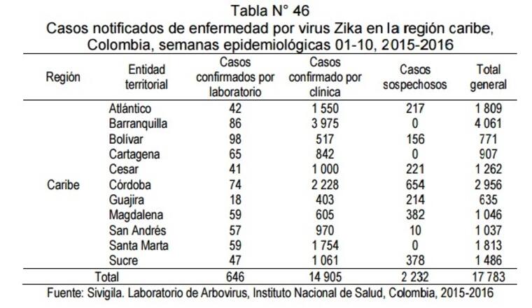 'En la semana epidemiológica 10 de 2016, se notificaron 4.251 casos nuevos, 2 212 casos de la semana 10 y 2.039 de semanas anteriores. Semanalmente el número de casos notificados se revisa debido a la notificación tardía del evento, a ajustes y a depuración por calidad del dato. Por procedencia Norte de Santander, Valle del Cauca, Huila, Tolima y