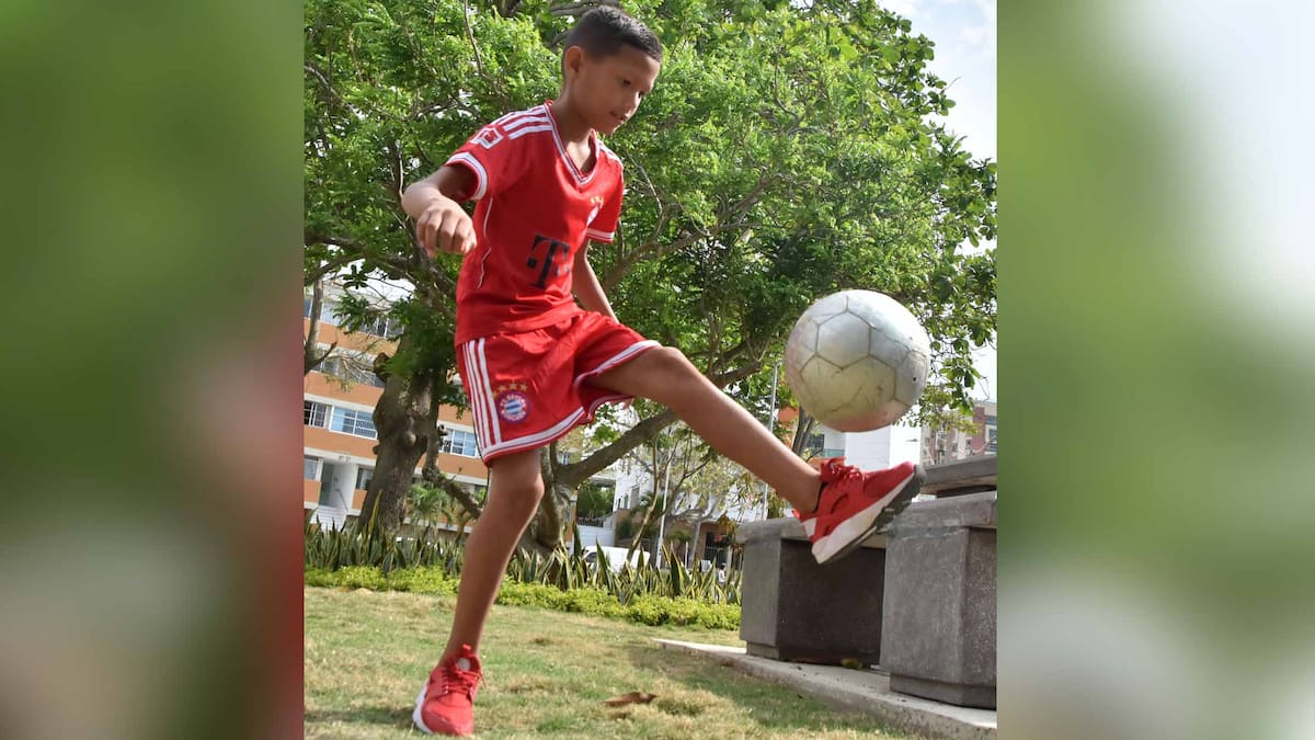 Tiene el uniforme del Bayer Munich, un balón plateado y está acompañado de su hermana, papá y mamá. Ese es su mundo, básicamente. Jean Paul, aunque quisiera portar en esos momentos las rayas de la Juventus de Cristiano Ronaldo, su ídolo futbolístico, disfruta del parque jugando fútbol, algo que hace unos años debía hacer desde la raya como 'técnico' de sus amigos.