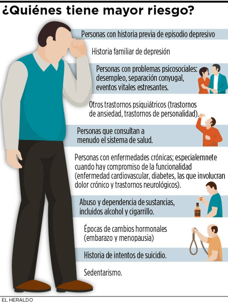 La depresión y las enfermedades coronarias van de la mano debido a que 'se aumenta el cortisol que es la hormona del estrés', y aunque las probabilidades son altas en las personas mayores 'se pueden presentar episodios depresivos desde la adolescencia'.