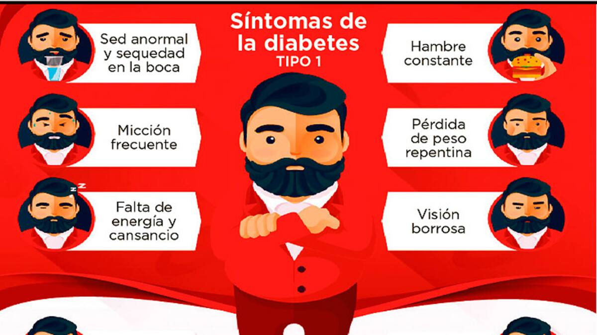 La diabetes tipo 1 (también llamada insulinodependiente, juvenil o de inicio en la infancia), explica la médico endocrinóloga Yadira Villalba, 'se produce por una producción deficiente de insulina y necesita de la administración diaria de esta hormona'. De esta, se desconoce la causa y no es prevenible. La sintomatología (que puede aparecer de forma súbita) se caracteriza por hambre constante (polifagia), sed anormal y sequedad en la boca, falta de energía, cansancio excesivo y las mencionadas en la tipo 2.