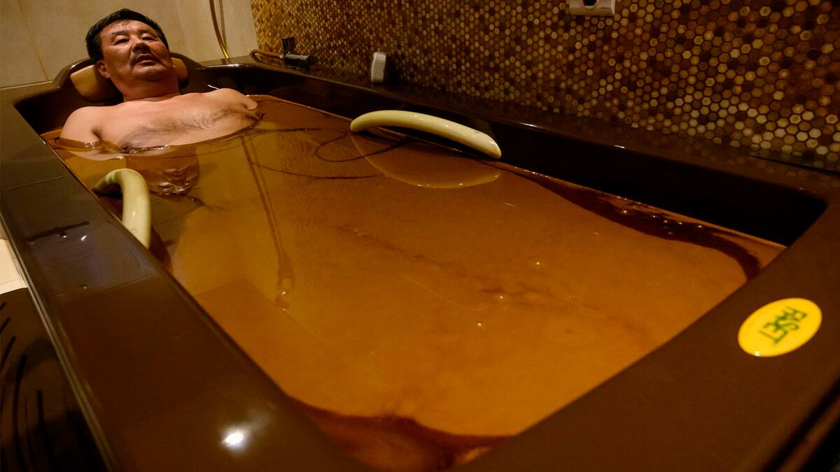 Tras 10 minutos de inmersión, una asistente frota el aceite marrón oscuro de su piel y envía a Sulfiya a la ducha. 'Hace tiempo que soñábamos' con pasar unos días aquí, cuenta esta empleada en el sector comercial que viajó con sus amigas desde la región rusa de Tartaristán.
