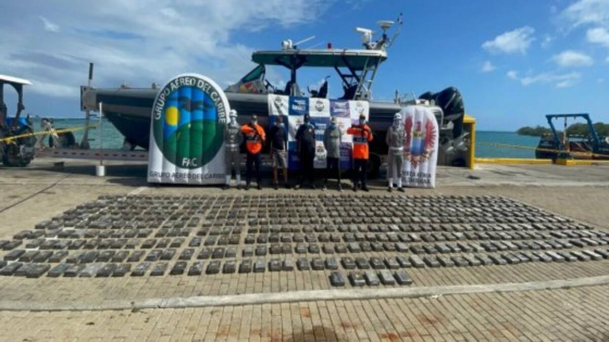 En una operación conjunta y combinada entre unidades militares de la Armada de Colombia, la Fuerza Aérea Colombiana y aeronaves de Estados Unidos, se incautaron 505 kilogramos de clorhidrato de cocaína que eran transportados en área general del Caribe a 95 millas náuticas de San Andrés, a bordo de una lancha tipo go fast, la cual tenía como destino Centroamérica.